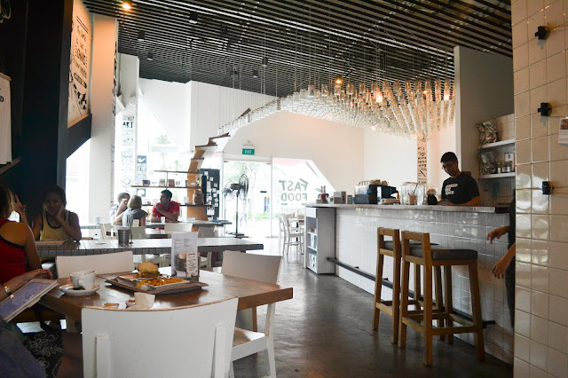 I won't be going into the details of what I attended, unlike the previous post but I will probably write about some of the things in future posts :-) Anyway, this is focused on the break in between panels where Sarah and myself headed to Fast Food for Thought at Sam @ 8Q, which is a short walk from the Singapore Art Museum. It was my first time there after hearing so much about it so I was quite excited.